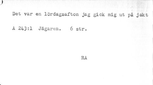 //// Det var en lördagsafton jag gick mig ut på jakt //// A 243:1 Jägaren. 6 str. //// RA ////