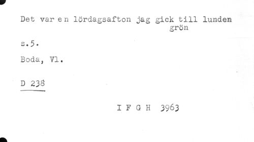 //// Det våren lördagsafton jag gick till lunden //// grön //// s. 5. //// Boda, VI. //// D 238 //// I F G H 3963 ////
