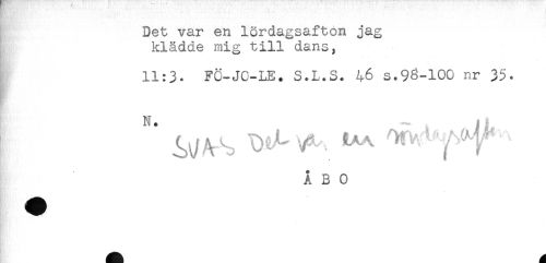 //// Det var en lördagsafton jag //// klådde mig till dans, //// 11:3. FC-JO-LE. S.L.S. 46 s.98-100 nr 35. //// N i //// is . //// ^ S ^ ^ ^Y' ' '' //// ÅBO //// Hy - //// By ^^^^^ ////