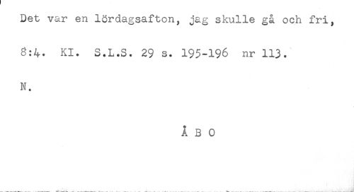 //// Det var en lördagsafton, jag skulle gå och fri, //// 3:4. Kl. S.L.S. 29 s. 195-196 nr 113. //// N. //// ÅBO ////