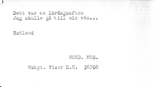 //// Dett var en lördagsafton //// Jag skulle gå till min vän... //// Estland //// NORD. MUS. //// Mskpt. Visor E.U. 36706 ////