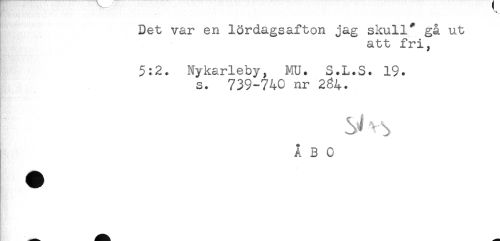 //// Det var en lördagsafton jag skull* gå ut //// att fri, //// 5:2. Nykarleby, MU. S.L.S. 19. //// s. 739-740 nr 234. //// 'b //// ÅBO ////