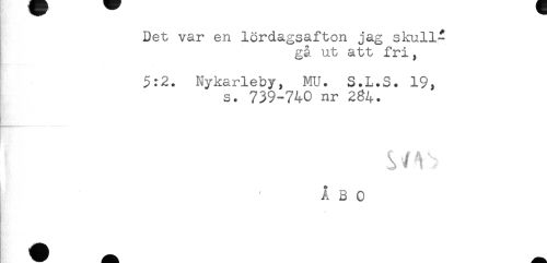 //// Det var en lördagsafton jag skull- //// gå ut att fri, //// 5:2. Nykarleby, MU. S.L.S. 19, //// s. 739-740 nr 234. //// ÅBO ////