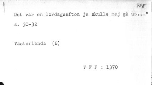//// ! //// ' Det var en lördagsafton ja skulle mej gå ut..." //// s. 30-32 //// Västerlanda (3) //// V F F : 1370 //// — //// t //// * ////