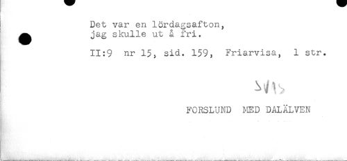//// k //// { Det var en lördagsafton, //// ^ jag skulle ut å fri. //// 11:9 nr 1$, sid. 159, Friarvisa, 1 str. //// FORSLUND MED DALÄLVEN ////