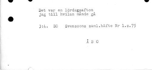 //// t. //// Det var en lördagsafton //// jag till hvilan månde gå //// 3:4. BO Svenssons saml.häfte Nr l.s.75 //// ÅBO //// ! ////