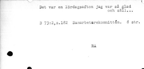 //// Det var en lördagsafton jag var så glad //// och säll... //// B 73:2,s.132 Samarbetarekommittån. 3 str. //// RÅ ////