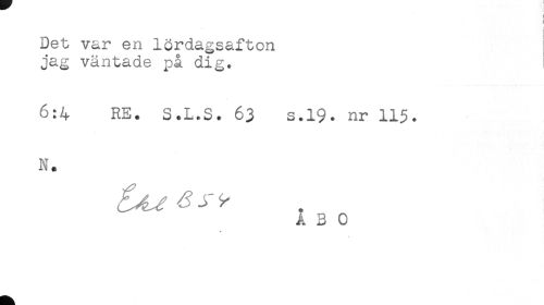 //// ! //// Det var en lördagsafton //// jag väntade på dig. //// 6:4 RE. S.L.S. 63 s.19. nr 115. //// N. //// ^ ^ T* //// A B 0 ////