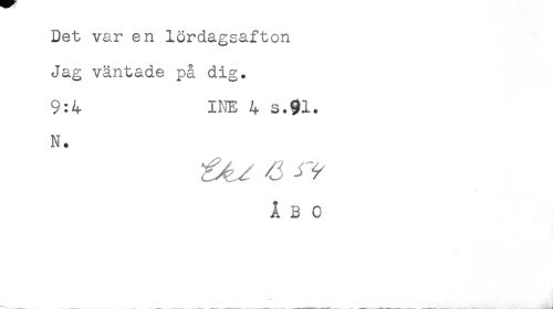 //// Det var en lördagsafton //// Jag väntade på dig. //// 9:4 INE 4 s.pl. //// N. //// ÅBO ////