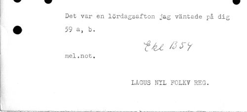 //// Det var en lördagsafton jag väntade på dig //// ^ < //// /mel.not. //// LAGUS NYL FOLKV REG. //// ___ _ ////