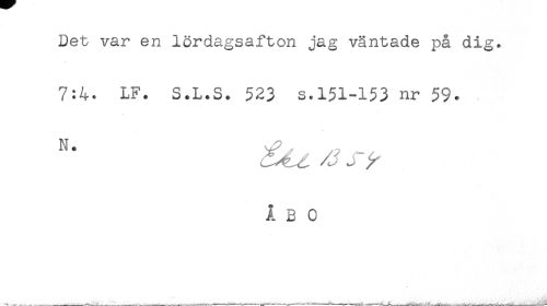 //// Det var en lördagsafton jag väntade på dig. //// 7:4* LF. S.LtS. 523 s.151-153 nr 59. //// ÅBO ////
