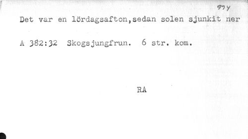 //// ' ' - 17 //// /Det var en lördagsafton,sedan solen sjunkit ner //// A 3^2:32 Skogsjungfrun. 6 str. kom. //// RA ////
