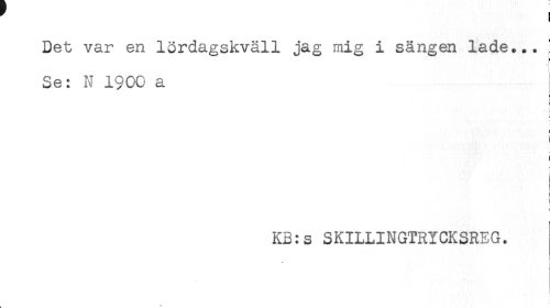 //// ! //// Det var en lördagskväll jag mig i sängen lade... ' //// Se: N 1900 a //// ! //// i //// - //// ! //// < //// : //// KB:s SKILLINGTRYCKSREG. //// * //// < //// i //// < ////