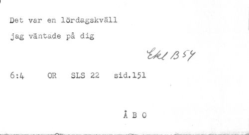 //// Det var en lördagskväll //// jag väntade på dig //// 6:4 OR SLS 22 sid.151 //// w ////