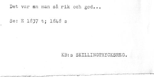 //// Det var an man så rik och god... //// Se: E 1337 t; lg43 s //// KB:s SKILLINGTRYCKSREG. ////