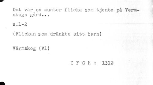 //// Det var en munter flicka som tjente på Verm- //// skogs gård... //// s.1-2 //// + //// (Flickan som dränkte sitt barn) //// Värmskog (VI) //// I F G H : 1312 ////