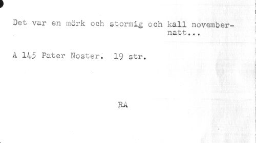 //// ! //// ! //// I //// Det var en mörk och stormig och kall november- j //// natt... //// A 145 Pater Noster. 19 str. //// ! //// t //// ! //// f //// < //// i //// RA //// < //// ! //// t ////