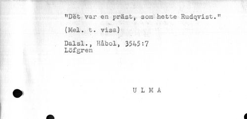 //// "Det var en präst, som hette Rudqvist." //// (Mel. t. visa) //// < . * — ^ //// . ... , - //// . Dalsl., Håbol, 3545:7 //// Löfgren ////