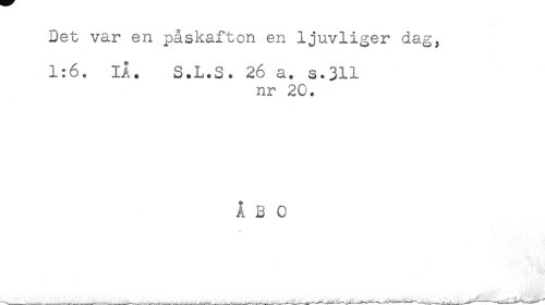 //// Det var en påskafton en ljuvliger dag, //// 1:6. IÅ. S.L.S. 26 a. s.3H //// nr 20. //// ÅBO ////