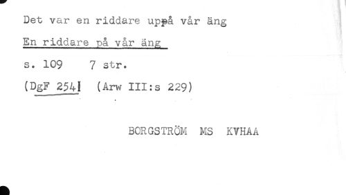 //// Det var en riddare uppå vår äng //// En riddare på vår äng //// s* 109 7 str. //// (DgF 254! (Arw III:s 229) //// BORGSTRÖM MS KVHAA ////