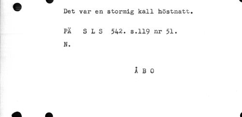 //// Det var en stormig kall höstnatt. //// PÄ S L S 542. S.119 nr 51. //// N. //// ÅBO ////