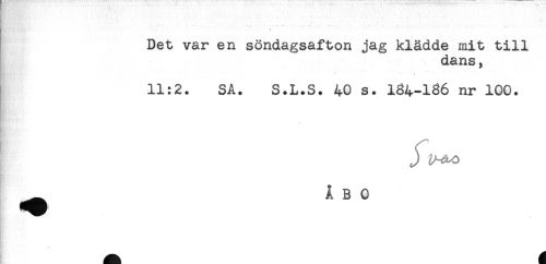 //// Det var en söndagsafton jag klädde mit till //// dans, //// 11:2. SA. S.L.S. 40 s. 134-136 nr 100. //// Jl^o //// - ÅBO //// t ////