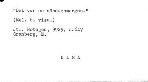 //// "Det var en söndagsmorgon." //// (Mel. t. visa.) //// Jtl. Hotagen, 9925, s.647 //// Granberg, E. //// U L M A ////
