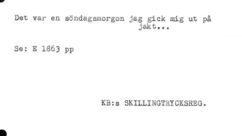 //// Det var en söndagsmorgon jag gick mig ut på //// jakt.. + //// Se: E I863 pp //// KB:s SKILLINGTRYCKSREG. ////
