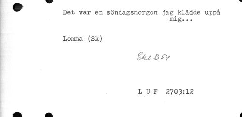 //// ^^ Det var en söndagsmorgon jag klädde uppå //// mig... //// . //// Lomma (Sk) //// * //// L U F 2?03:12 ////