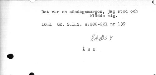 //// < //// Det var en söndagsmorgon, jag stod och //// klädde mig. //// 10:4 GE. S.L.S. s.200-221 nr 139 //// ^^ i //// ÅBO ////