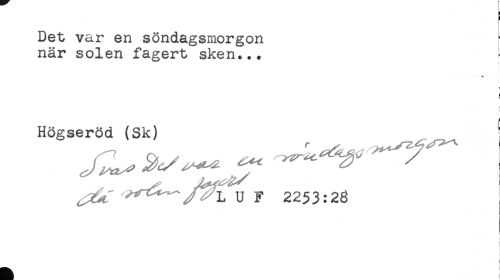 //// Det var en söndagsmorgon //// när solen fagert sken... //// t //// Högseröd (Sk) //// /t L U F 2253:2g //// i //// f ////