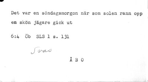 //// Det var en söndagsmorgon när som solen rann opp //// en skön jägare gick ut //// 6:4 Öb SLS 1 s. 131 //// ÅBO ////