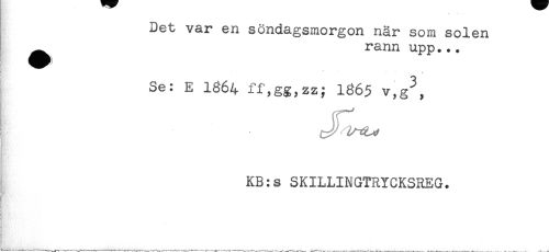 //// Det var en söndagsmorgon när som solen //// rann upp... //// å //// Se: E 1364 ff,gg,zz; 1365 //// j KB:s SKILLINGTRYCKSREG. ////