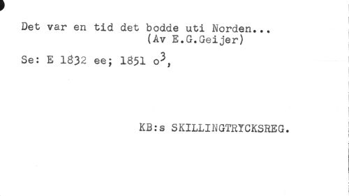 //// Det var en tid det bodde uti Norden... //// (Av E.G.Geijer) //// Se: E 1832 ee; 1851 o^, //// KB:s SKILLINGTRYCKSREG. //// ) //// i ////