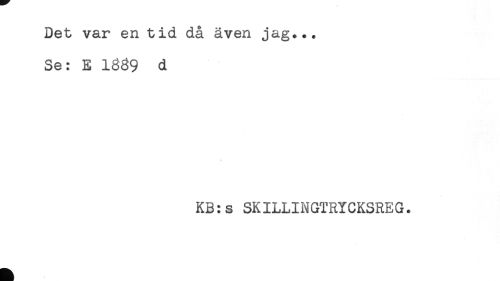 //// Det var en tid då även jag... //// Se: E 1669 d //// KB:s SKILLINGTRYCKSREG. ////