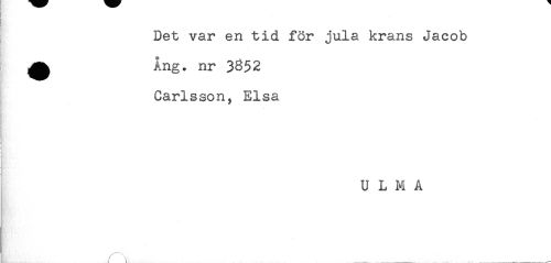 //// Det var en tid för jula krans Jacob //// ^ Ang. nr 3^52 //// E ' //// Carlsson, Elsa //// U L M A //// / ' ////