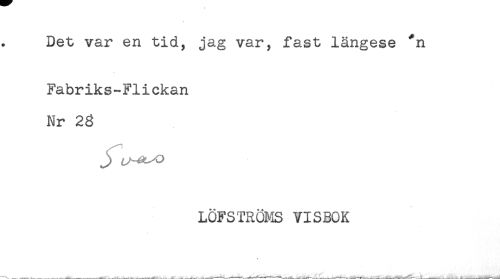//// Det var en tid, jag var, fast längese *n //// Fabriks-Flickan //// Nr 2g //// LÖFSTRÖMS VISBOK ////