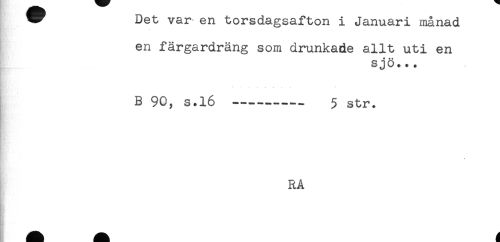 //// W Det var en torsdagsafton i Januari månad //// en färgardräng som drunkade allt uti en //// sjö... //// B 90, s.16 ......— 5 str. //// RA ////