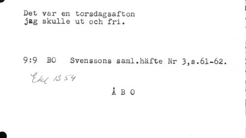 //// Det var en torsdagsafton //// jag skulle ut och fri. //// t //// ! //// r //// i //// i //// 9:9 BO Svenssons saml.häfte Nr 3,s.61-62. //// ÅBO //// i //// i //// } //// i //// ! ////