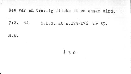 //// Det var en trevlig flicka ut en ensam gård, //// t * //// 7:2. SA. S.L.S. 40 s.175-176 nr 39. //// M.a. //// i //// i //// . //// ÅBO //// [ ////