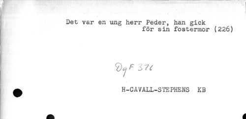 //// "'. t //// Det var en ung herr Peder, han gick //// ^ för sin fostermor (226) //// ^ H-CAVALL-STKPHENS KB ////