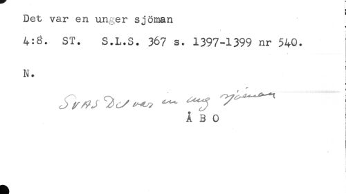 //// = //// Det var en unger sjöman //// 4:8. ST. S.L.S. 367 s. 1397-1399 nr 540. //// N. //// f //// t //// ÅBO //// c //// f //// i ////