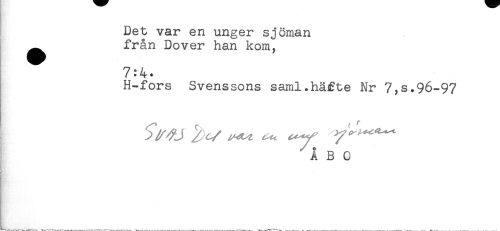 //// Det var en unger sjöman //// ^ från Dover han kom, //// 7:4* //// H-fors Svenssons saml.häfte Nr 7,s.96-97 //// Å B 0 ////