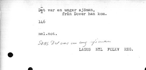 //// . - //// Det var en unger sjöman, //// ; ^ från Dover han kom. //// 146 //// mel.not. //// LAGUS NYL FCLKV REG. ////
