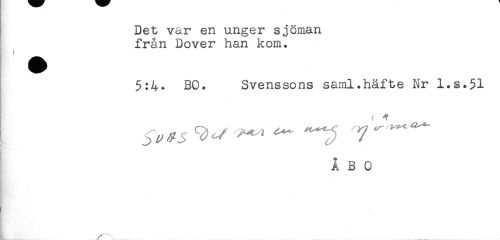 //// Det var en unger sjöman //// från Dover han kom. //// 5:4. BO. Svenssons saml.häfte Nr l.s.51 //// ÅBO //// ! ////
