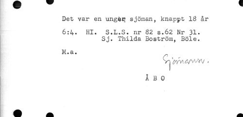 //// Det var en ung4i? sjöman, knappt år //// * //// 6:4. Hl. S.L.S. nr 82 s.62 Nr 31. //// Sj. Thilda Boström, Böle. //// * //// M.a. //// ÅBO ////