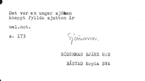 //// Det var en unger sjöhan //// knappt fyllda sjutton år //// mel.not. //// SÖDERMAN BJÄRE H:D //// BÅSTAD Kopia SVA ////
