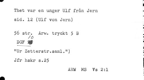 //// Thet var en unger Ulf från Jern //// sid. 12 (Ulf von Jern) //// $6 str. Arw. tryckt 5 B //// DGF //// H //// "Ur Zetterstr.saml.") : //// Jfr hskr s.25 ////