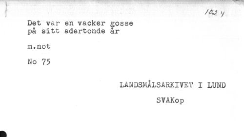 //// y //// Det var en vacker gosse //// på sitt adertonde år //// m.not //// No 75 //// LANDSMÅLSARKIVET I LUND //// SVAKop ////