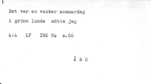 //// Det var en vacker sommardag //// i gröna lunde mötte jag //// 4:4 LF INE 94 s.66 //// ÅBO ////
